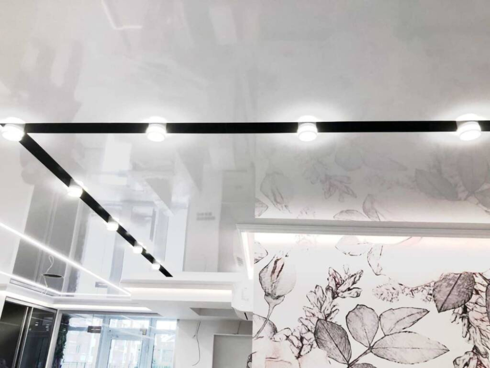 Основний елемент – електрична шина (трек), яка кріпиться до натяжної або базової стелі. У неї вставляються світильники, які можна:
