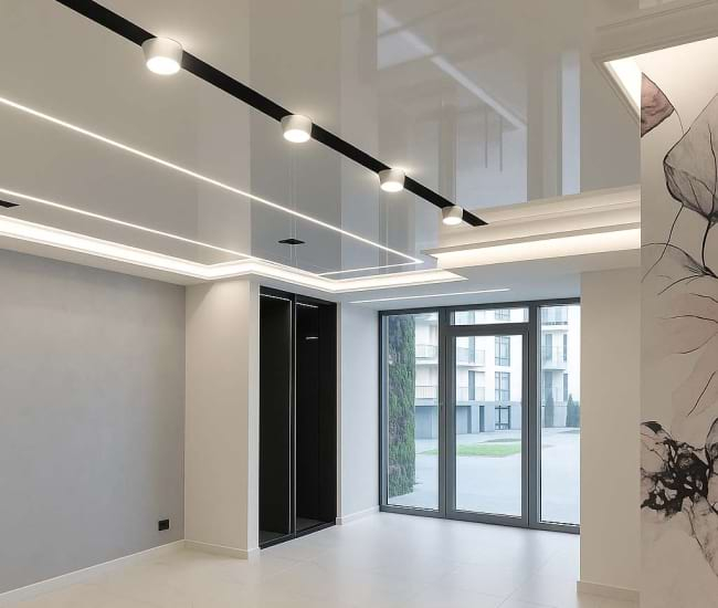 | Вбудована | Інтегрується в натяжну стелю через профіль | Сучасні житлові інтер’єри |