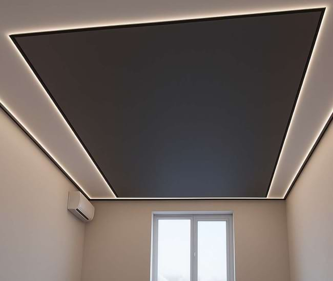 Тіньова натяжна стеля відкриває широкі можливості для сучасного освітлення. У таких конструкціях ми реалізуємо будь-які популярні варіанти: точкові LED-світильники, трекові системи, світлодіодні стрічки — усе, що потрібно для комфортного і стильного простору.