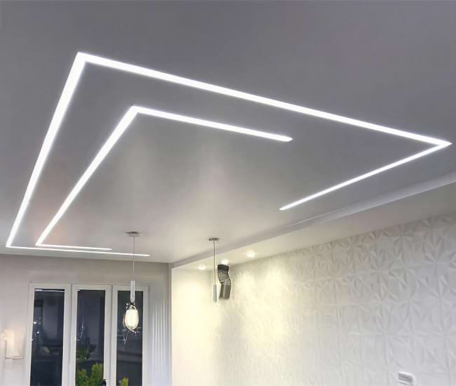 - вид монтажу для прихованих карнизів, декоративного освітлення та інших акцентів.